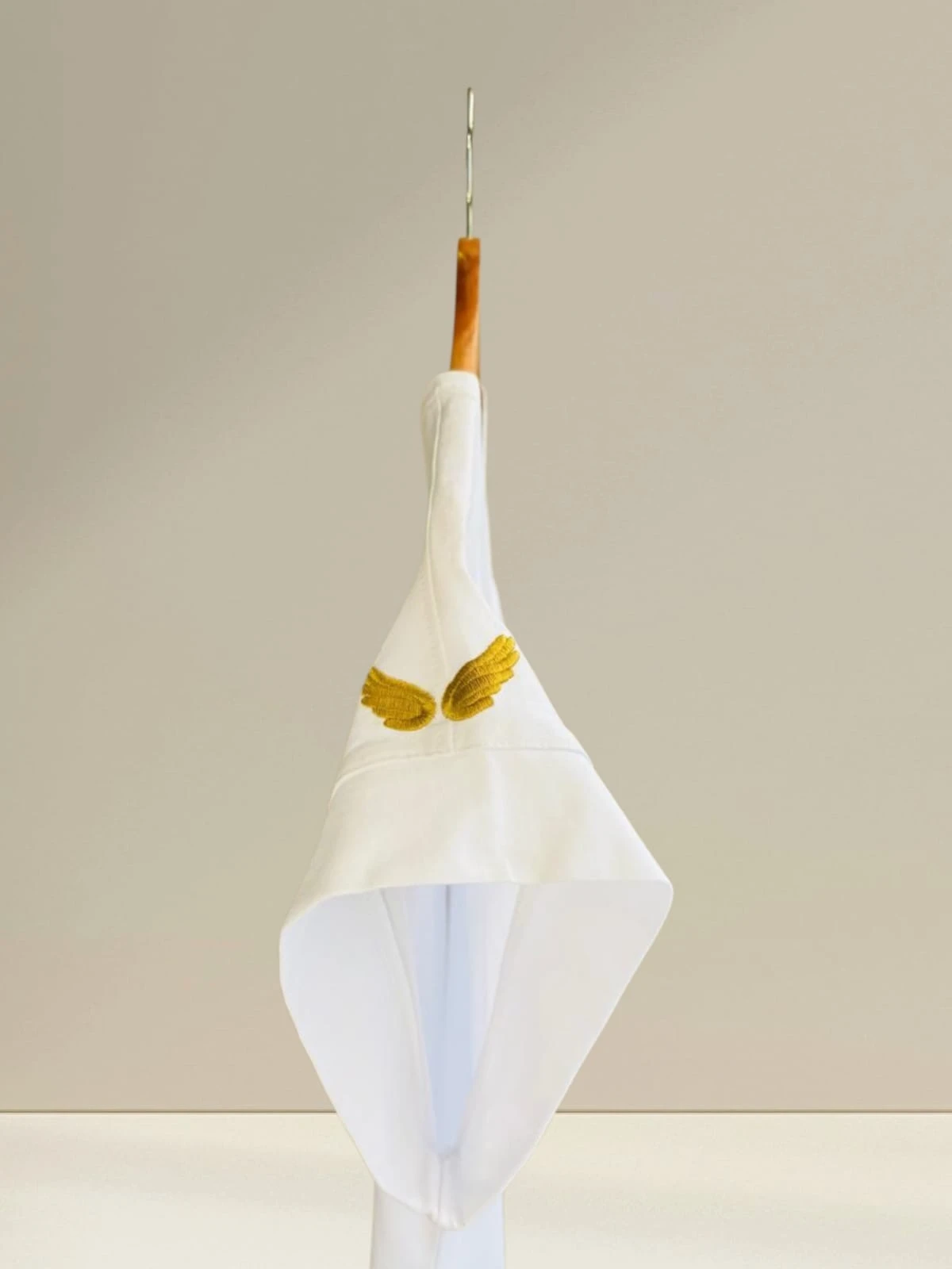 En la manga derecha se encuentra nuestra alita representativa, bordada en hilo dorado, en armonía con el diseño principal.